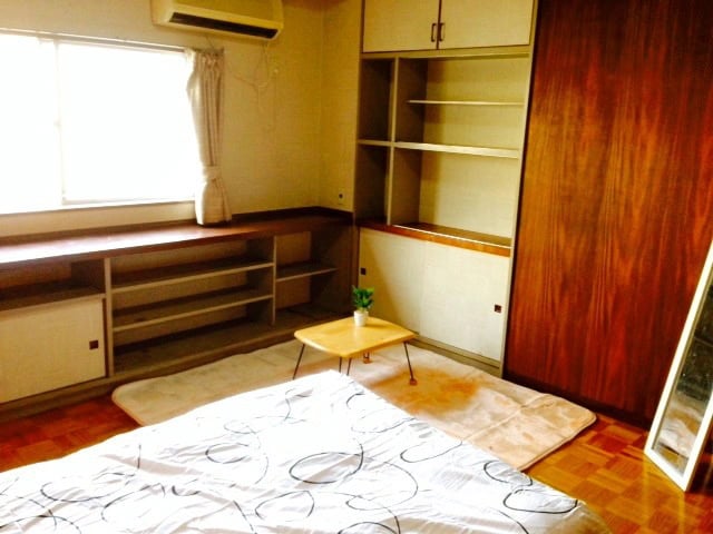 Sunny fully furnished room with fridge, TV, aircon, etc. Share house with Japanese and foreigners.